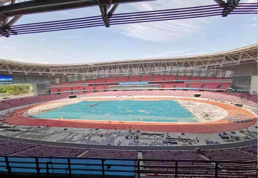 (正鋪設(shè)全新同欣跑道的鄭州奧體中心)